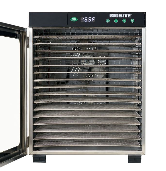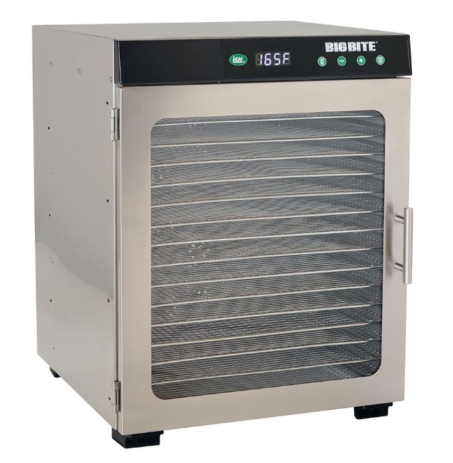 We are proud to feature LEM® products. The Big Bite dehydrator has clear door and a powerful 1,200 watt heating element, dual, rear-mounted fans, and rear venting for horizontal airflow for efficient and uniform dehydrating. The 24 hour timer means that you can walk away and come back to delicious dried fruit, jerky, etc.