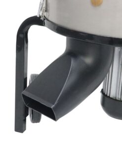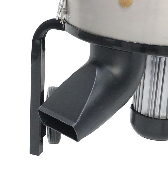 - Angled chute directs feathers nad water away from motor
